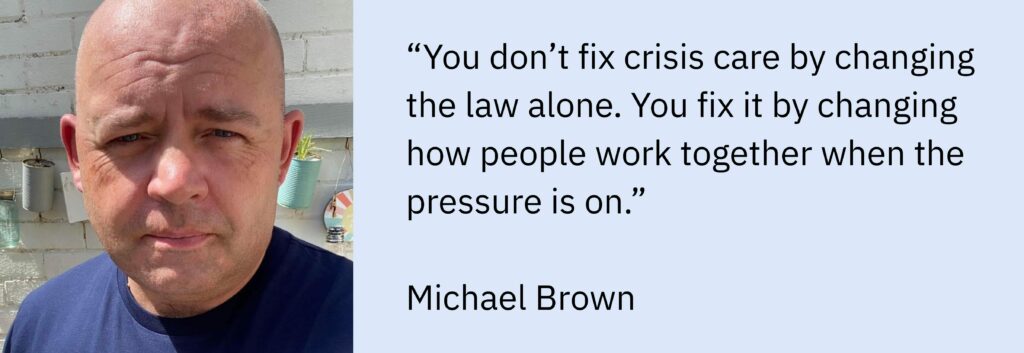 This lack of legal confidence is not confined to policing. Brown is equally critical of gaps in mental health services’ understanding of police powers, and of the myths that circulate unchallenged across professional boundaries.